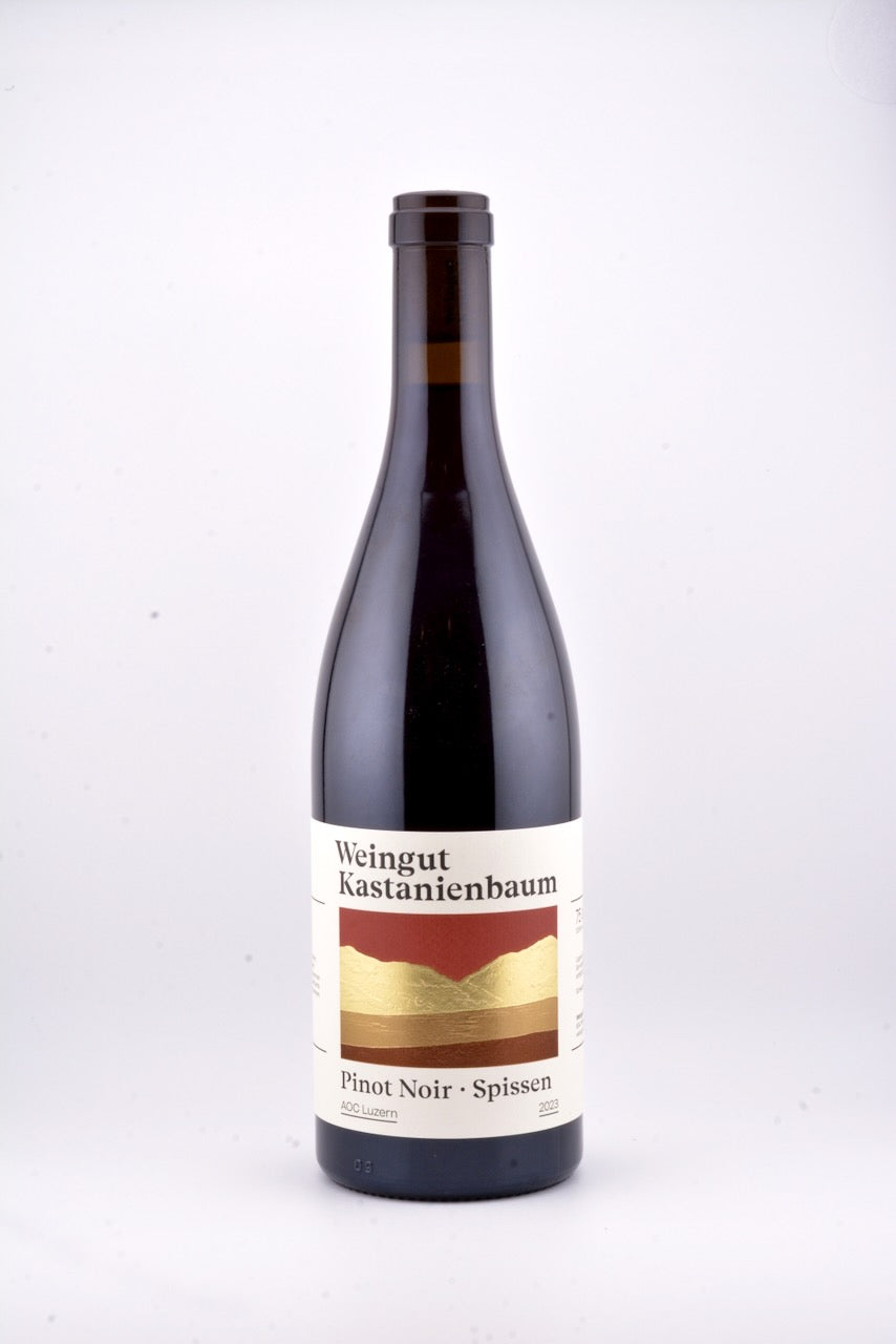 Pinot Noir de Lucerne, version grand cru. Spissen 2023 allie profondeur et précision : cerise noire, sureau, touche boisée, tanins fins. Un rouge dense, racé, aux accents de terroir et à l’élégance tranquille. Déjà superbe, il vieillira avec grâce. Format 75 cl ou magnum — selon ton appétit.