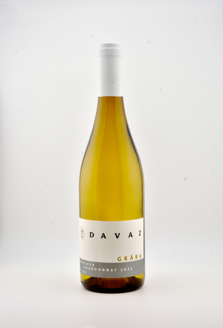 Gräba, c’est le Chardonnay de relief. Un blanc sec, profond, aux arômes multiples : fruits jaunes mûrs, fleurs blanches, pointe d’amande, et une minéralité droite qui traverse le verre. En bouche, c’est ample, légèrement crémeux, soutenu par une fraîcheur vive et une belle tension. Le boisé, s’il y a, reste discret et intégré. Aujourd’hui, il peut paraître encore jeune, mais il est taillé pour durer — ou se boire déjà, selon l’instant. Un blanc de table et de matière, pour poissons grillés, crustacés, viandes blanches. La famille Davaz, en version calcaire et maîtrisée.