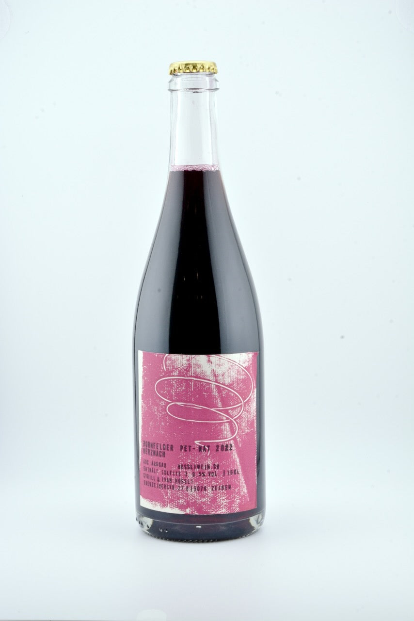 Un pét-nat rouge qui claque, à la robe sombre et vibrante. 100 % Dornfelder, fermenté naturellement en bouteille, sans ajout de CO₂ ni filtration.